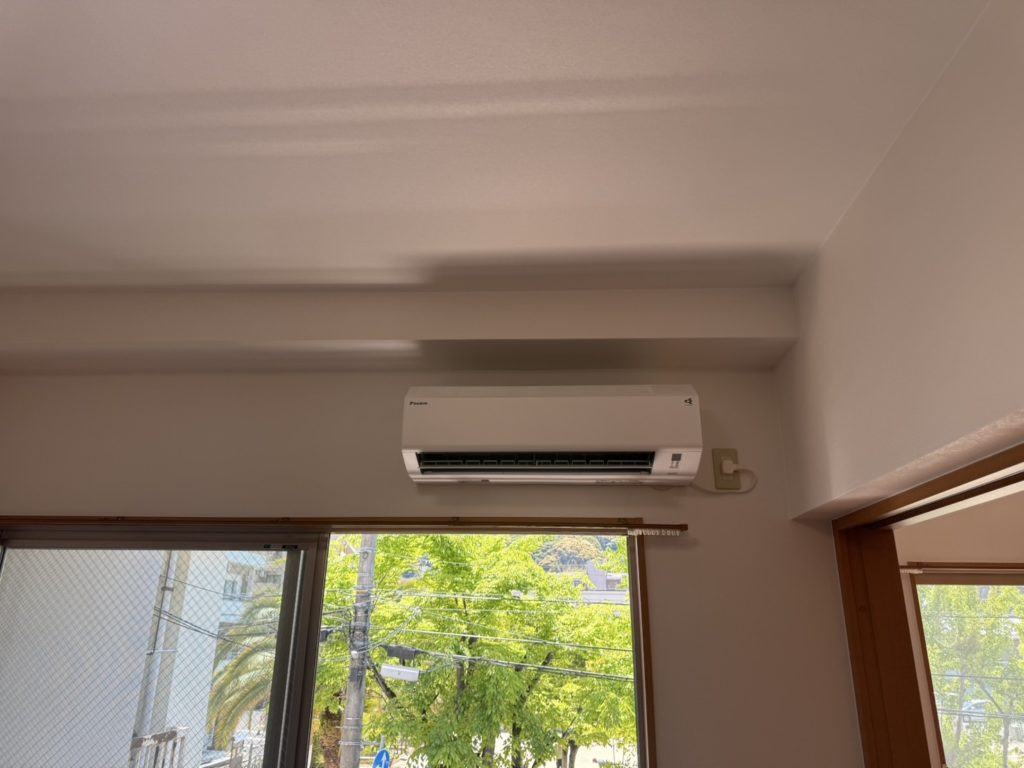 今回は大家様がネットで購入された新品エアコン2台の設置に、広島市のアパートご訪問いたしました。