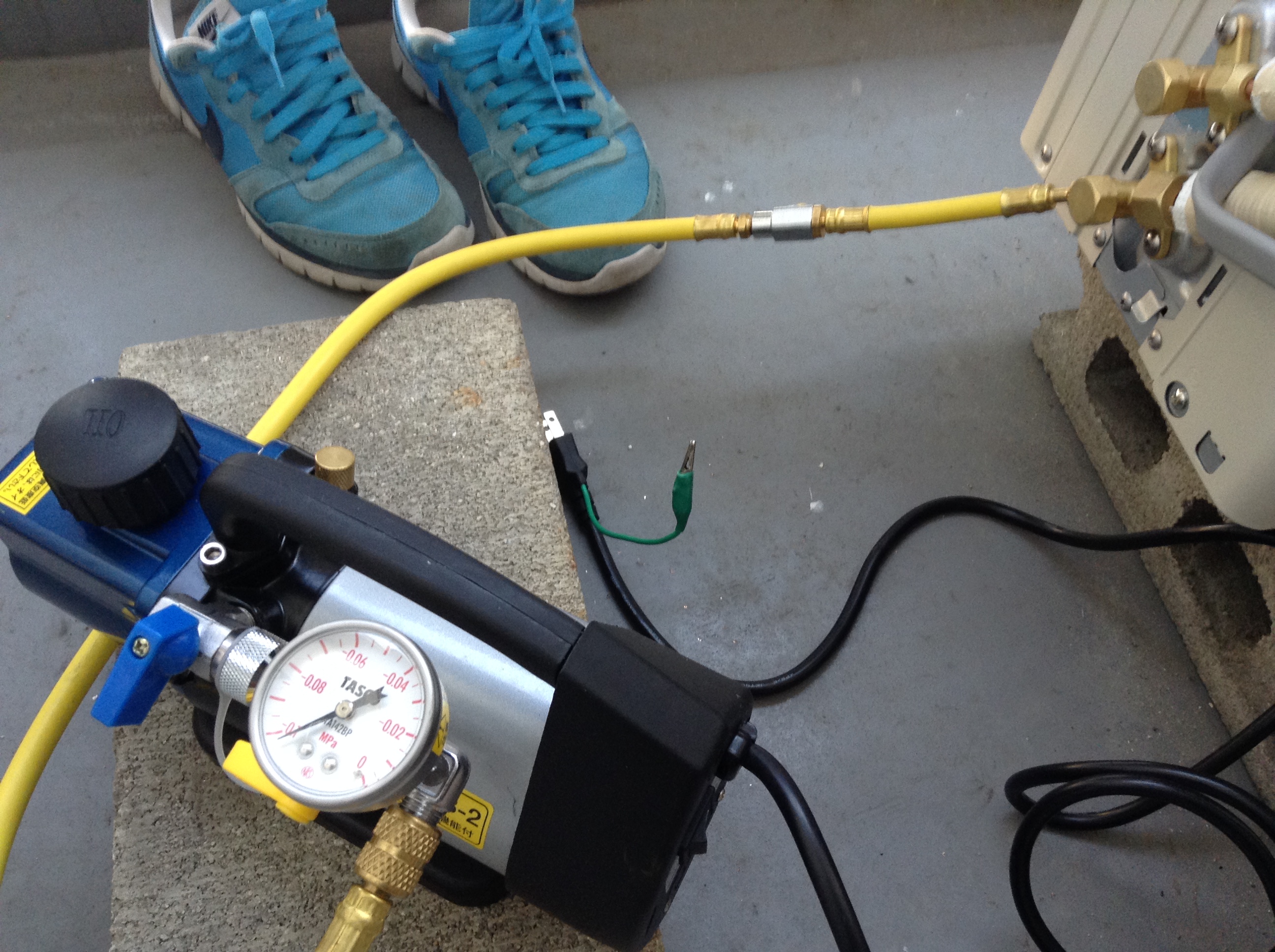 真空引き・試運転を行い、工事完了です。