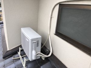 室内機を設置する天井付近に専用コンセントはありましたが、配管穴がなかったので穴あけをさせて頂きました。